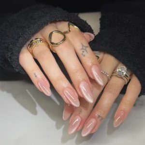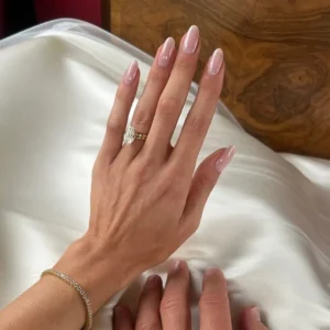 Bài viết của ELLE mô tả xu hướng này là bước tiếp theo của thẩm mỹ tối giản. Tinh thần “Clean Girl” với lớp móng trong suốt làm nổi bật đường nét tự nhiên của bàn tay. Thiết kế không cần màu quá nổi bật hay họa tiết dày.