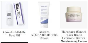 ELLE đưa ví dụ sản phẩm có khả năng: phục hồi, làm dịu. Gồm có Glow-It-All Jelly Face Oil của Mizz Korea, Aestura ATOBARRIER365 Cream, Haruharu Wonder Black Rice 5 Ceramide Barrier Moisturizing Cream.
